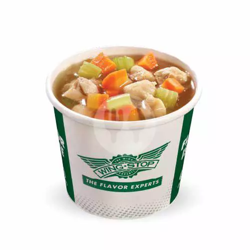 Chicken Soup yang berisi kuah kaldu ayam, potongan ayam dan sayuran